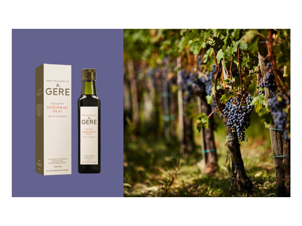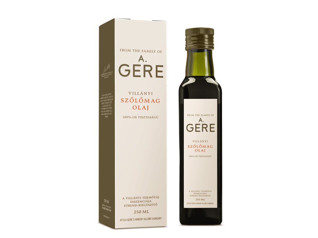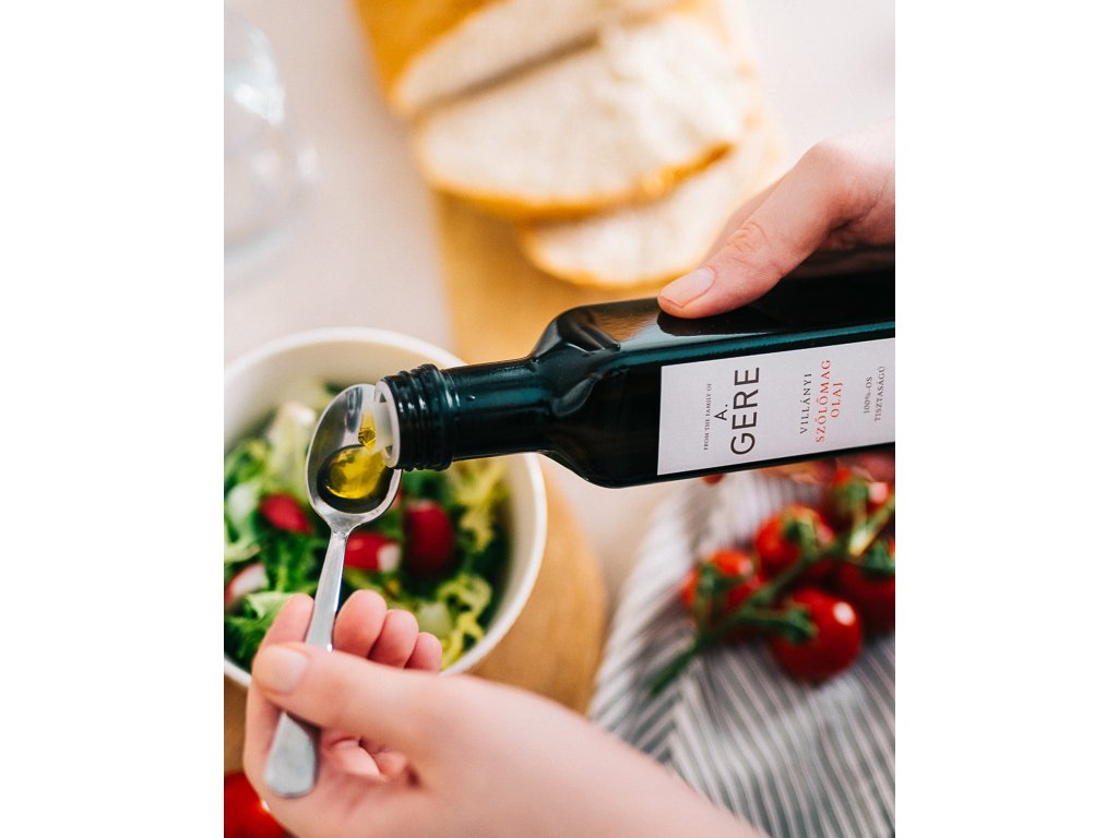 Olej získaný ze semínek dokonale vyzrálých modrých hroznů je mimořádně bohatý na bioaktivní antioxidanty. Tento produkt je darem přírody – díky své jedinečné chuti má široké využití v gastronomii a je zároveň velmi zdravý.